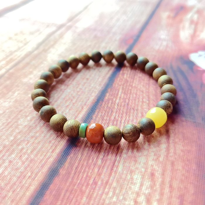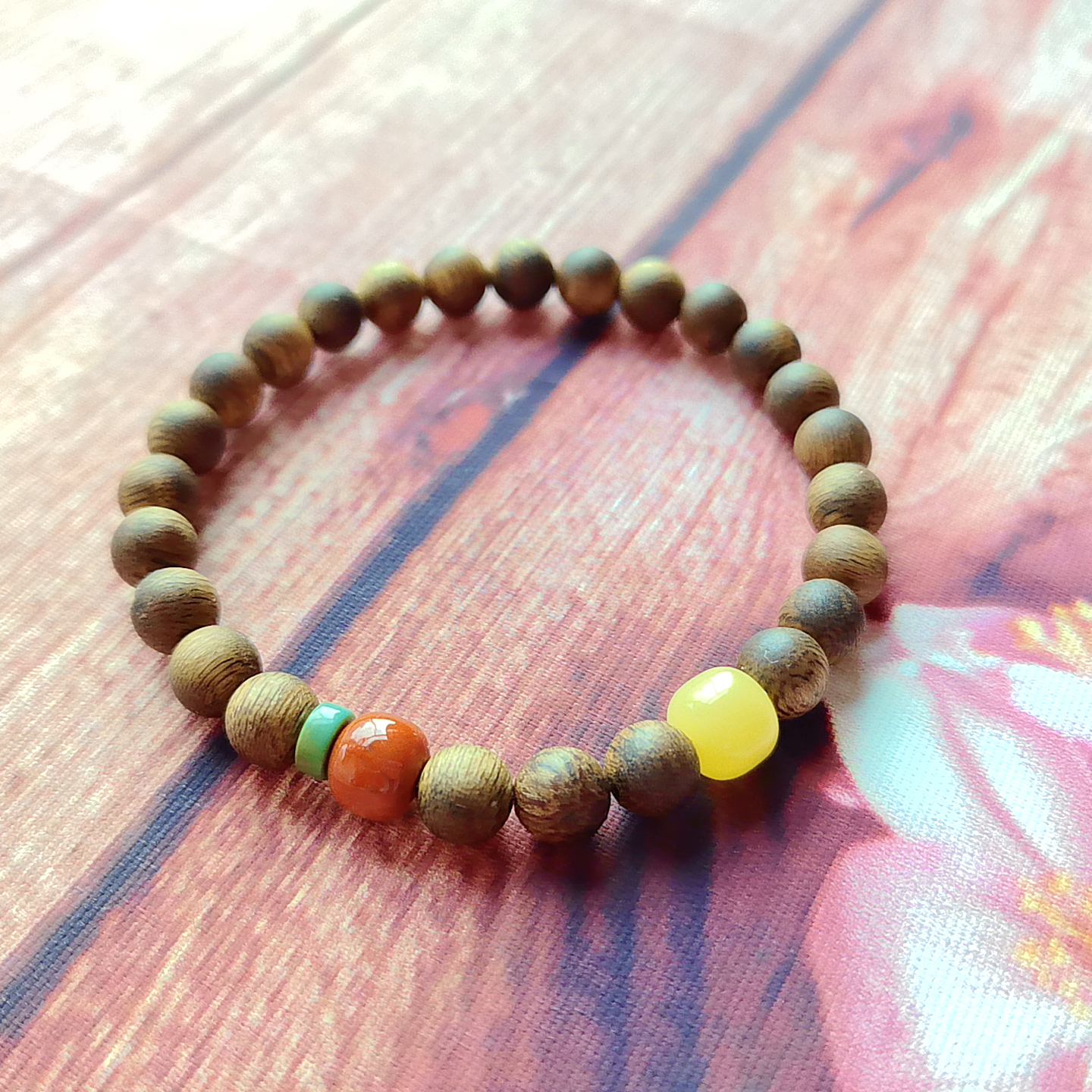 Home Gemstone Bracelet Agarwood with Amber & Turquoise Bracelet—Harmony·Protection·Healing