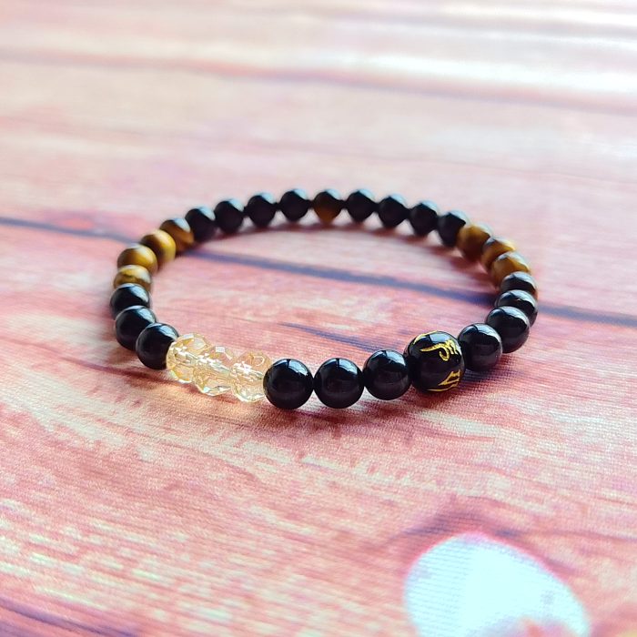 Home Gemstone Bracelet Black Tourmaline with Citrine·Tiger’s Eye & Black Onyx Six-Syllable Mantra Bracelet —Prosperity·Protection·Grounding