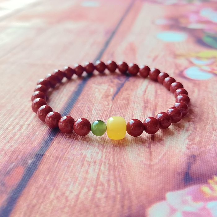 Home Gemstone Bracelet Cinnabar with Amber & Hetian Nephrite Jade Bracelet—Protection·Vitality·Harmony