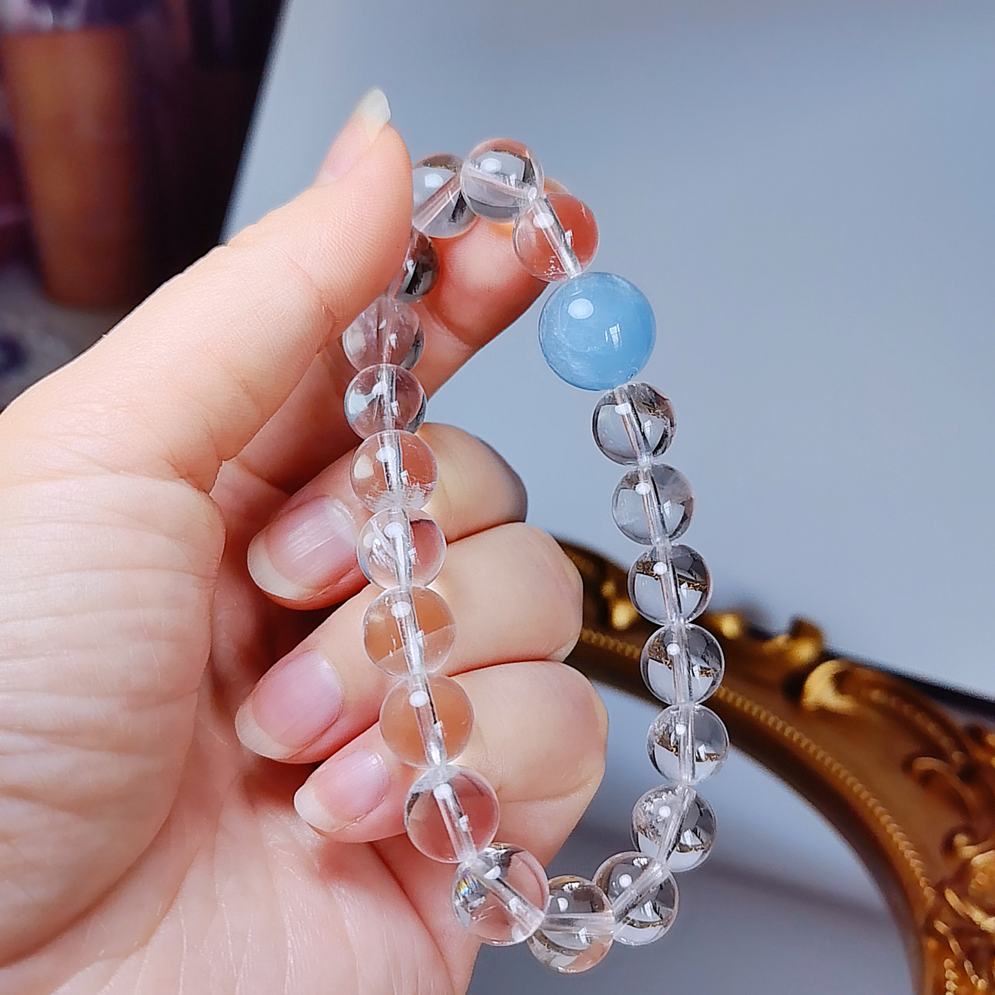 Home Gemstone Bracelet Clear quartz & Aquamarine Bracelet – Clarity·Calm·Communication