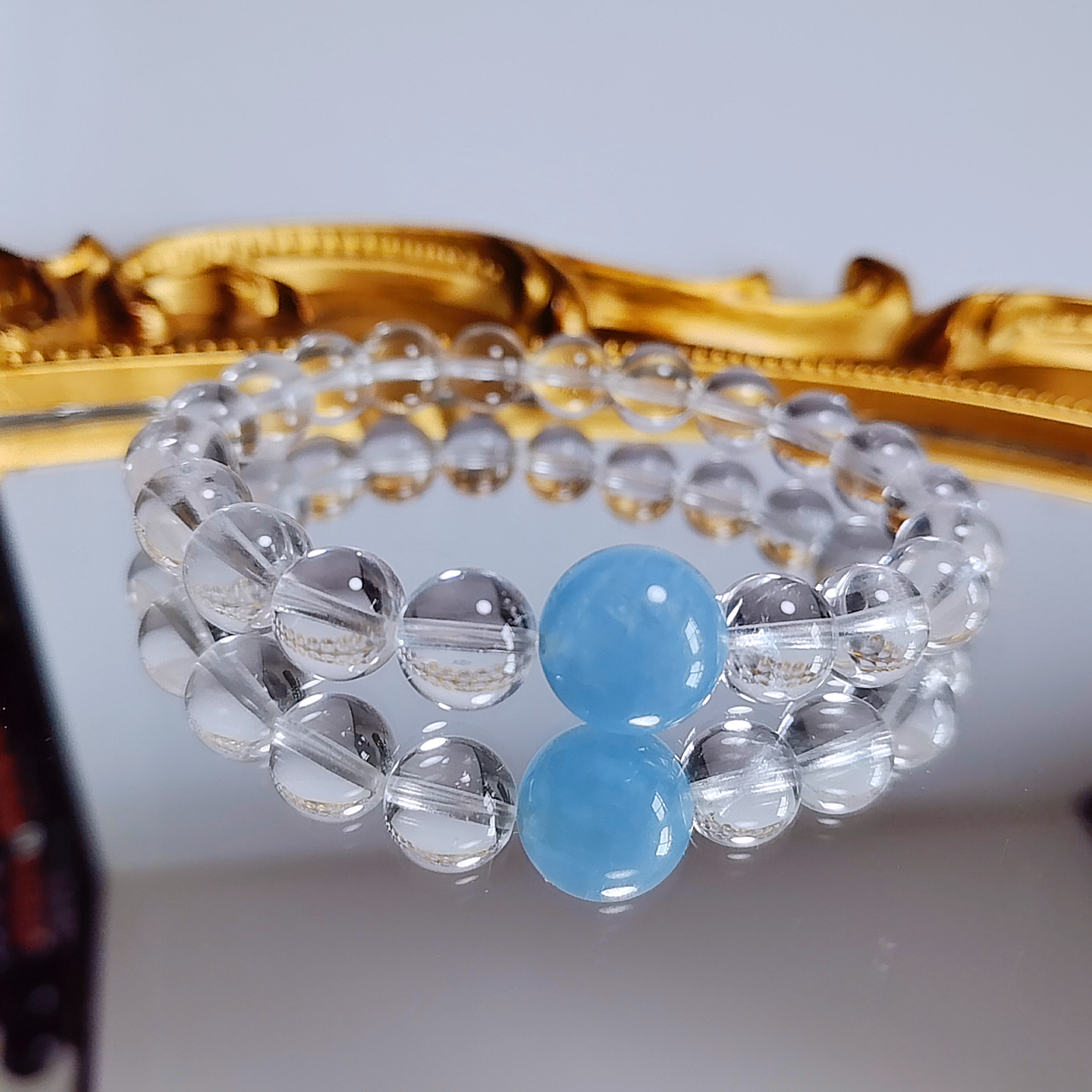 Clear quartz & Aquamarine Bracelet – Clarity·Calm·Communication