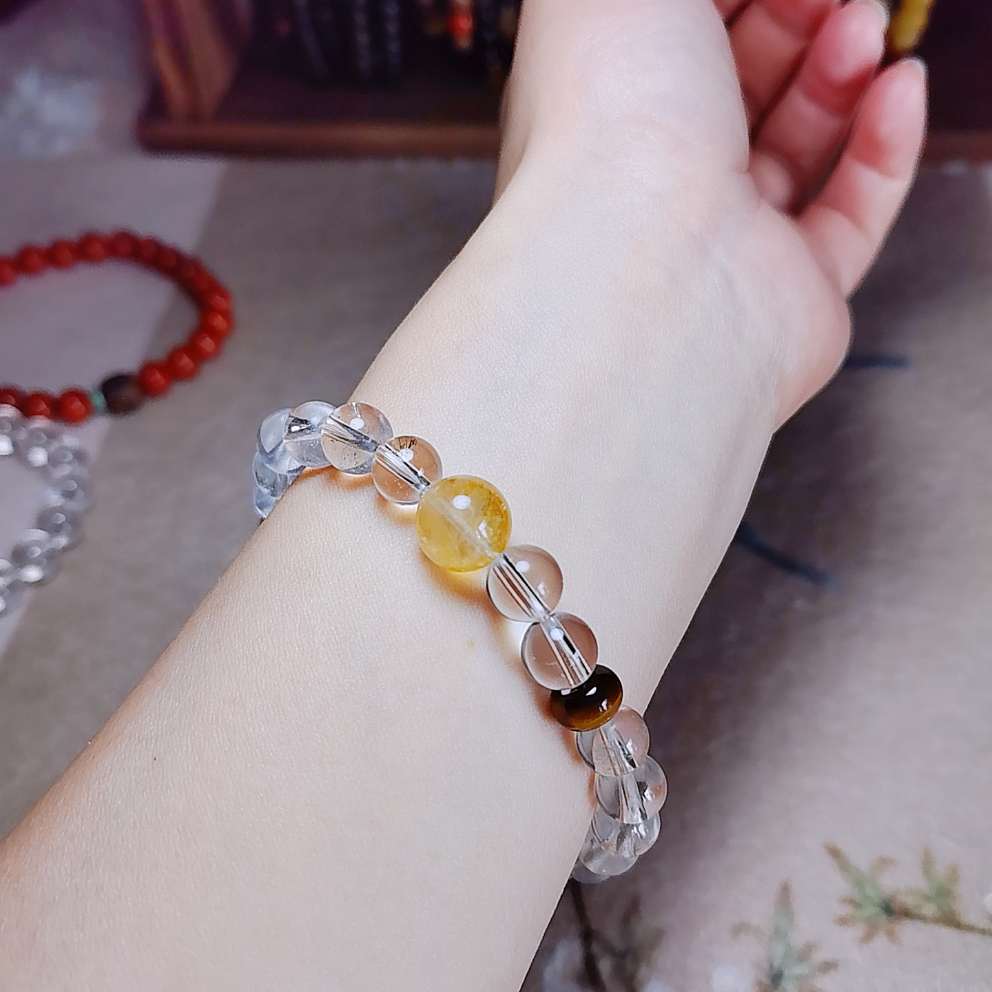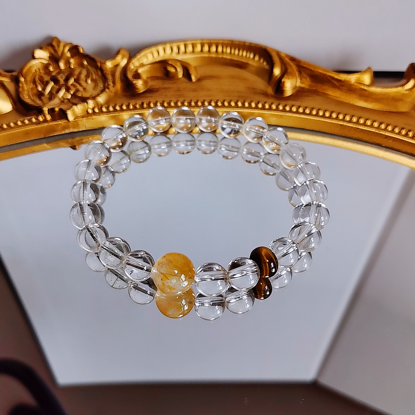 Home Gemstone Bracelet Clear quartz& Tiger’s Eye Bracelet – Clarity·Courage·Manifestation