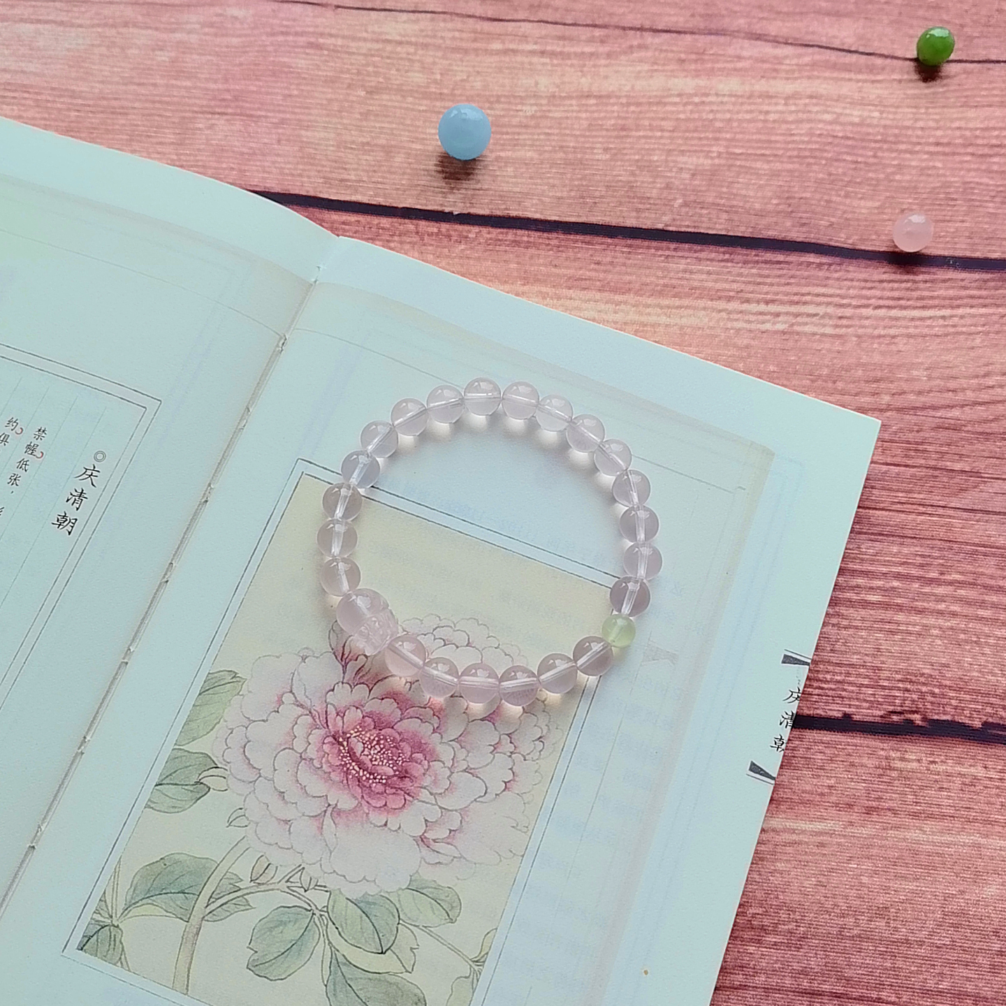 Home Gemstone Bracelet Rose Quartz with Pi Xiu & Prehnite Bracelet – Love·Wealth·Harmony