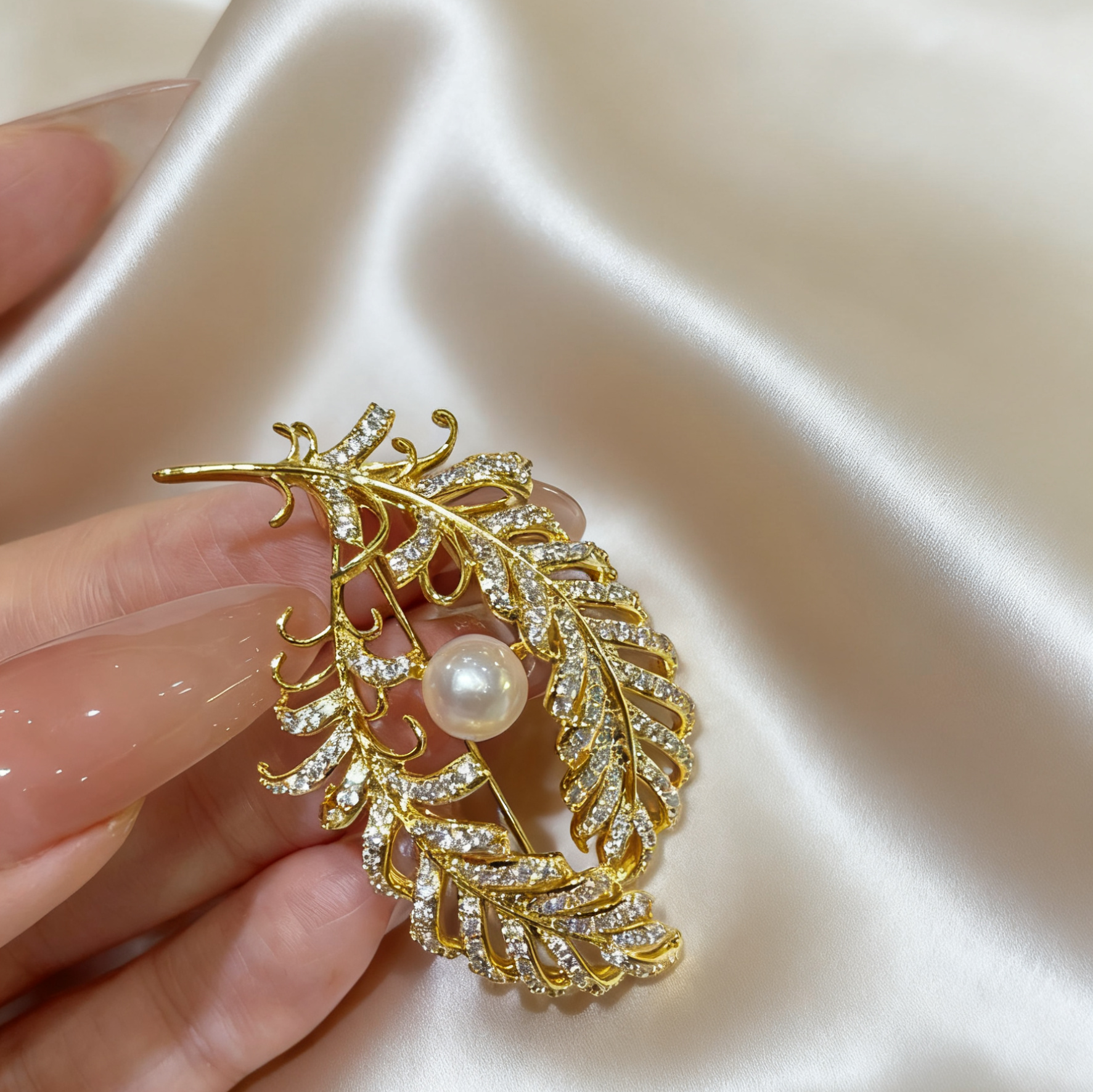 Luxurious Feather Brooch with Akoya Pearl-Freedom & Comfort