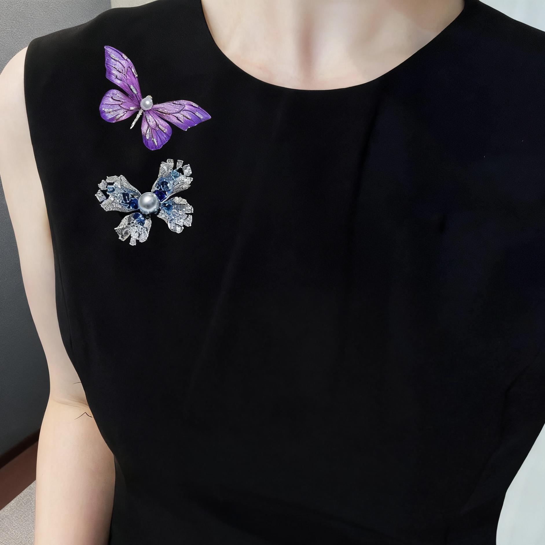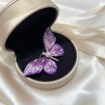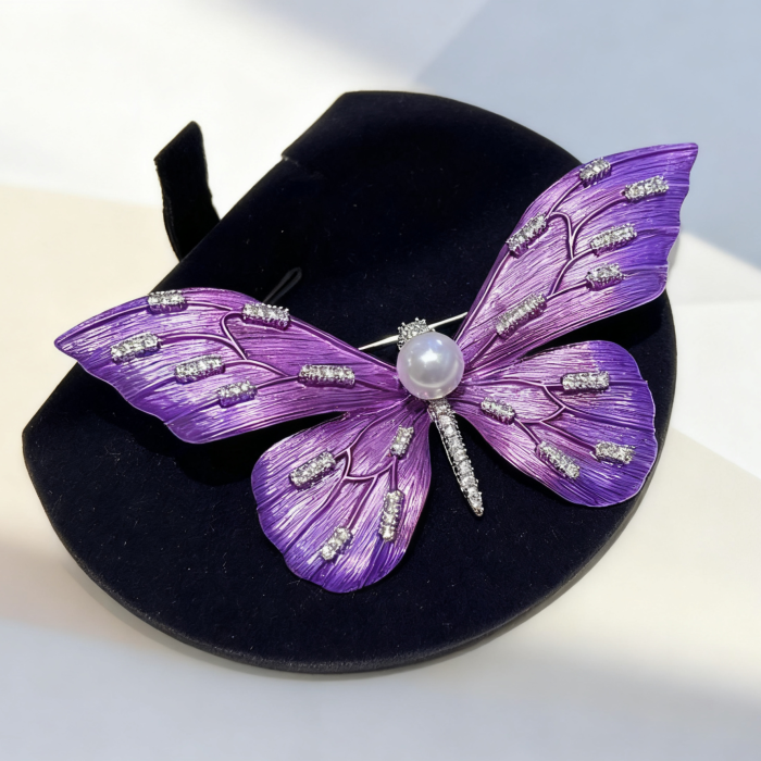 1. Design: The dreamy purple butterfly design with textured enamel wings, sparkling cubic zirconia accents, and a lustrous Akoya pearl center is both symbolic and eye-catching. It brings a touch of luxurious whimsy to your ensemble, making a graceful yet striking fashion statement.