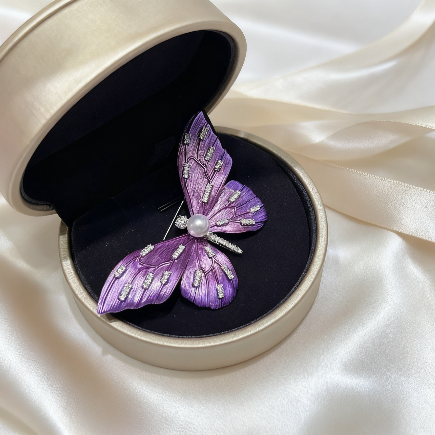 Purple Butterfly Brooch with Akoya Pearl – Rebirth & Freedom