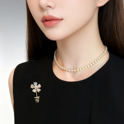 Flower Brooch with Akoya Pearl – Elegant & Versatile Statement Piece