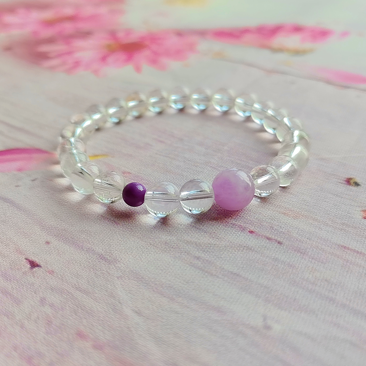 Home Gemstone Bracelet Clear Quartz with Kunzite & Lepidolite Bracelet – Purify·Balance·Harmonize