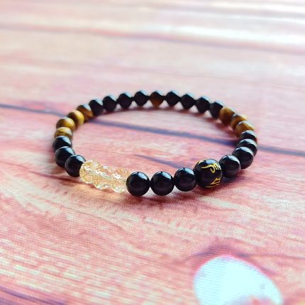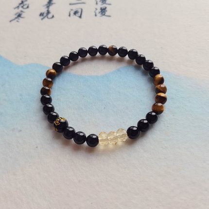 Black Tourmaline with Citrine·Tiger’s Eye & Black Agate Six-Syllable Mantra Bracelet —Prosperity·Protection·Grounding