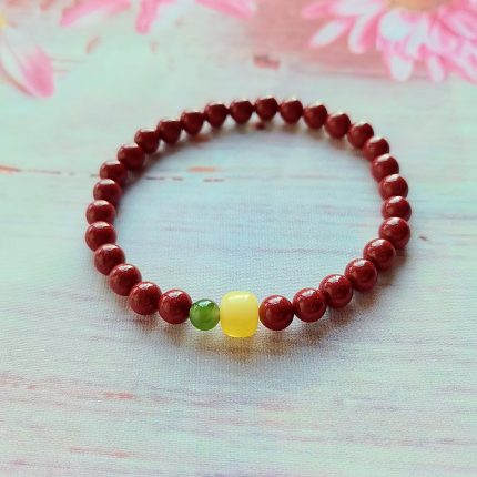 Price range: 42.00 USD through 56.00 USDCinnabar with Amber & Hetian Nephrite Jade Bracelet—Protection·Vitality·Harmony
